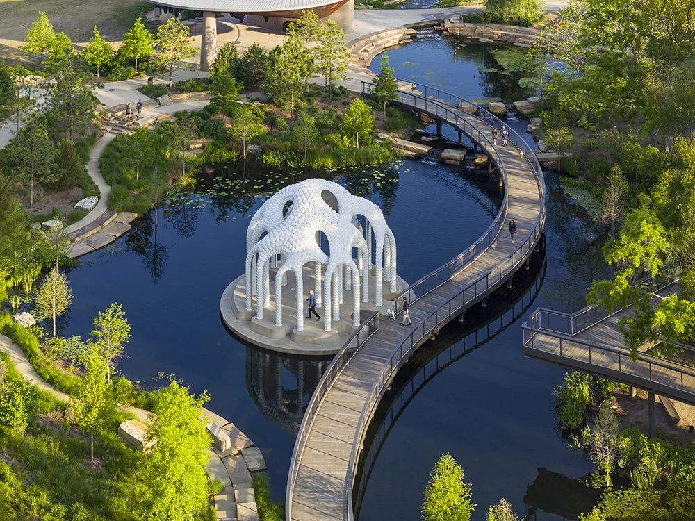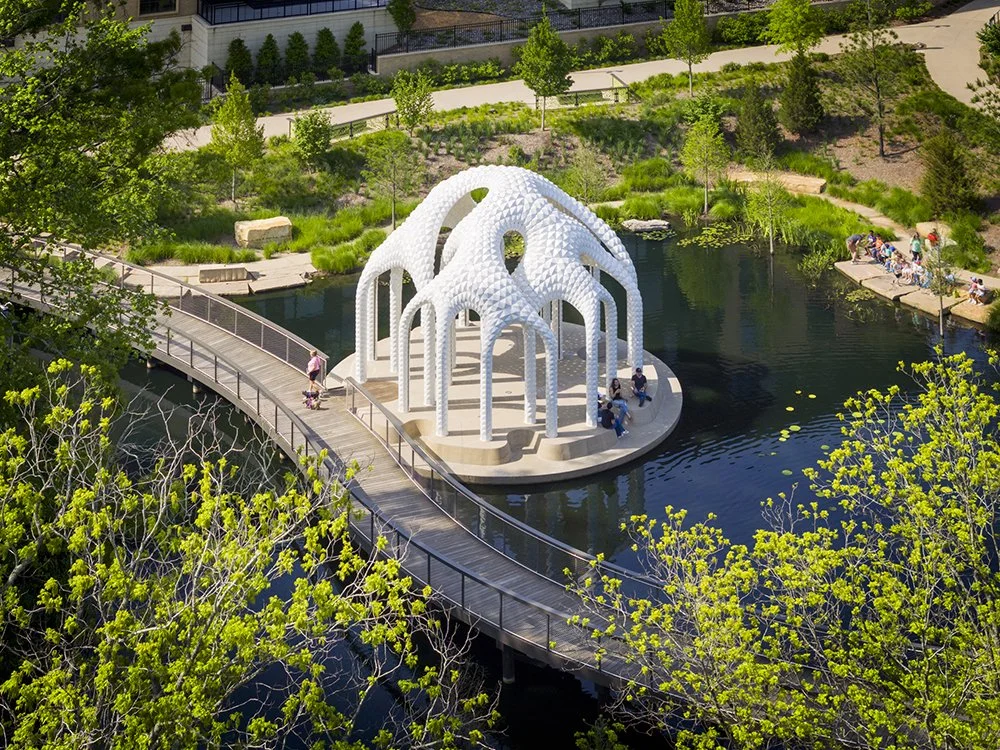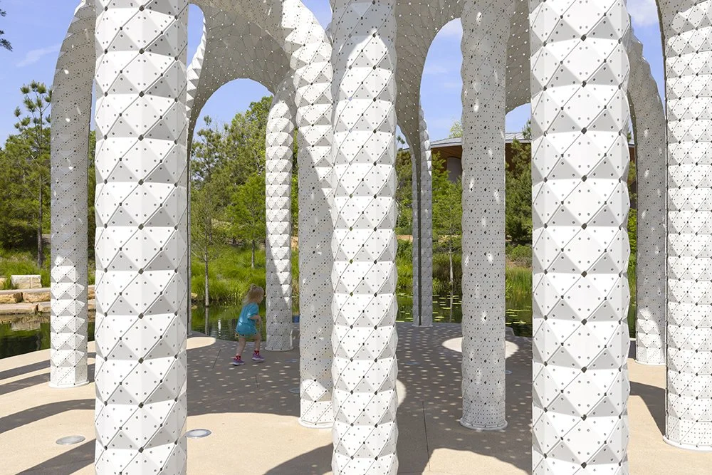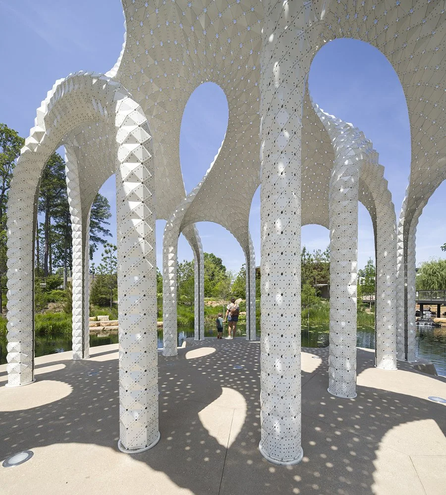 Like a mirage made solid, L’île Folie rises from the water in the heart of Downtown Cary Park—part pavilion, part sculpture, and entirely unexpected. More than a landmark, it is a playful reinvention of an old idea: the architectural folly.