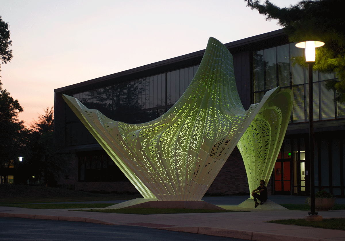 HYPARBOLE is a permanent structure commissioned by Rhode Island College and the Rhode Island State Council of the Arts through the Allocation for Art for Public Facilities Act